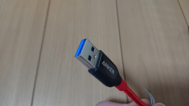 USB3.0対応であることが分かりやすいように、Type-A側の端子は青くなっています。