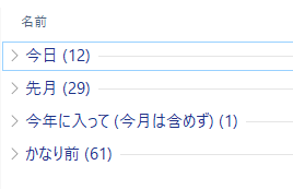 同様の操作により、『更新日時』でグループ化した場合には、以下のようなグループ表示が行われます。