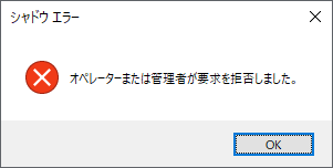 ※資格情報を入力する際、パスワードの入力を間違うと、『シャドウ エラー』というキャプションで『アクセスが拒否されました。』というエラーメッセージが表示されます。